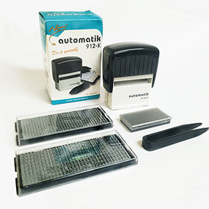Timbre con Imprentillas intercambiables de Goma montado en una práctica caja automática, el cual sirve para timbrar diferentes tipos de papel. Es apto para alto tráfico. Su tampón alcanza para mas de 10.000 impresiones, antes de su recarga con la tinta para tampones de goma Automatik.