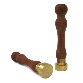 Elegante lacrador de bronce con mango de madera.