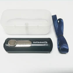 Práctico Timbre Tipo sello de bolsillo, manual, con tampón incluído, el cual puede ser recargado con la tinta para sellos de goma Automatik o en el caso de recambio sólo puede ser efectuafo por el fabricante.
