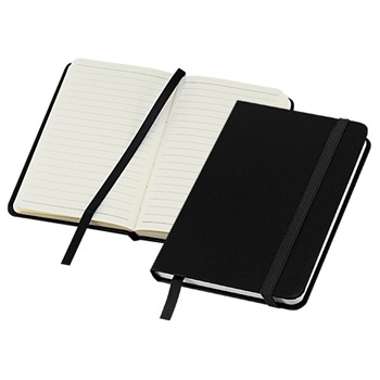 Libreta tipo "Colorskine" tamaño A6, con cubierta de cartón piedra forrada en PU (cuero sintético) de color de 1.5mm de espesor. Interior 80 hojas lineadas amarillas de 80gsm. Incluye banda elástica y huincha separadora.