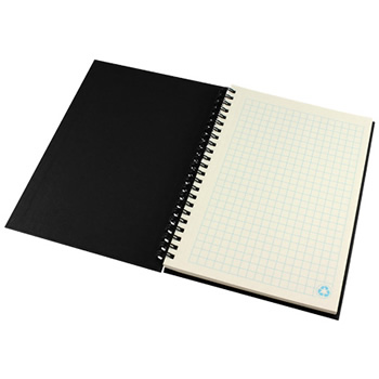 Cuaderno Ecológico con Tapas Duras de Cartón Reciclado 650gsm, 70 hojas interiores lineadas y anillado metalico doble cero.