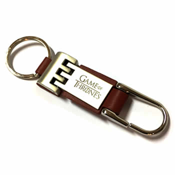 Llavero Metal-Cuero modelo "Premium". Presentación en estuche laminado café con cuna aterciopelada.