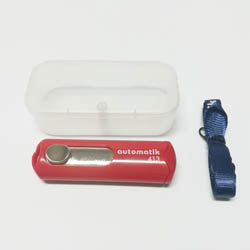 Práctico Timbre Tipo sello de bolsillo, manual, con tampón incluído, el cual puede ser recargado con la tinta para sellos de goma Automatik o en el caso de recambio sólo puede ser efectuado por el fabricante.